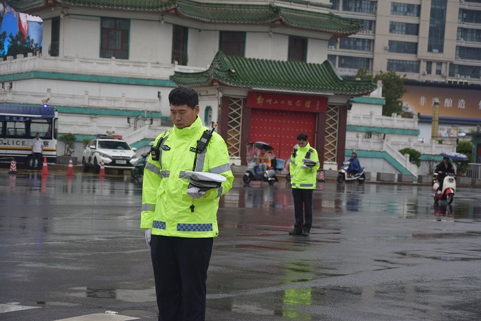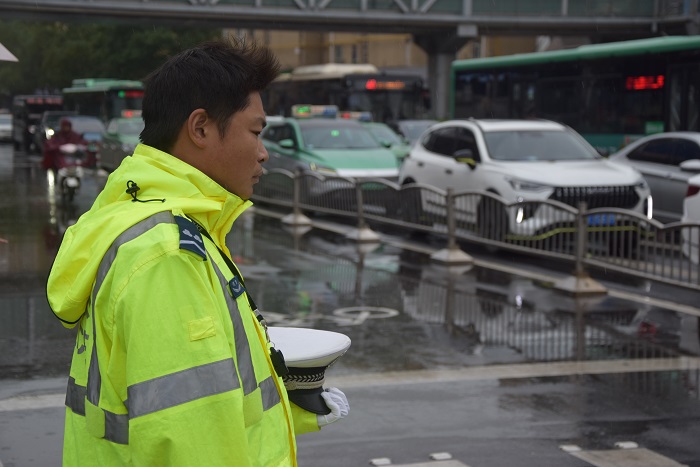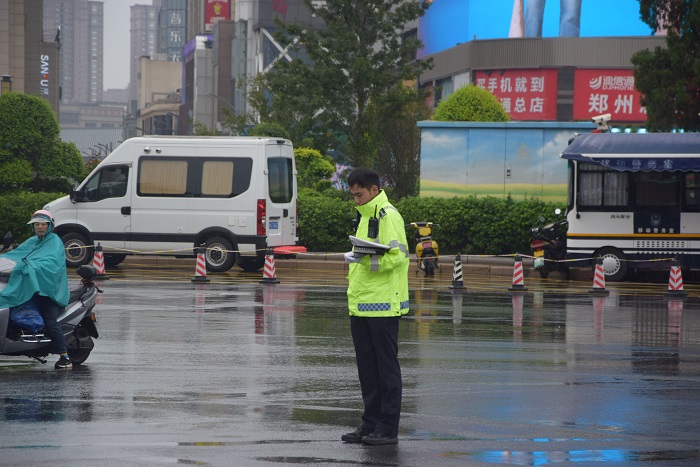 上午9时18分,尖锐的防空警报声响彻城市上空。刹那间,郑州交警四支队全体民辅警整齐划一,迅速脱帽,面容凝重,庄重地肃立默哀。与此同时,路口执勤交警通过规范有力的指挥手势,示意车辆暂停行驶。